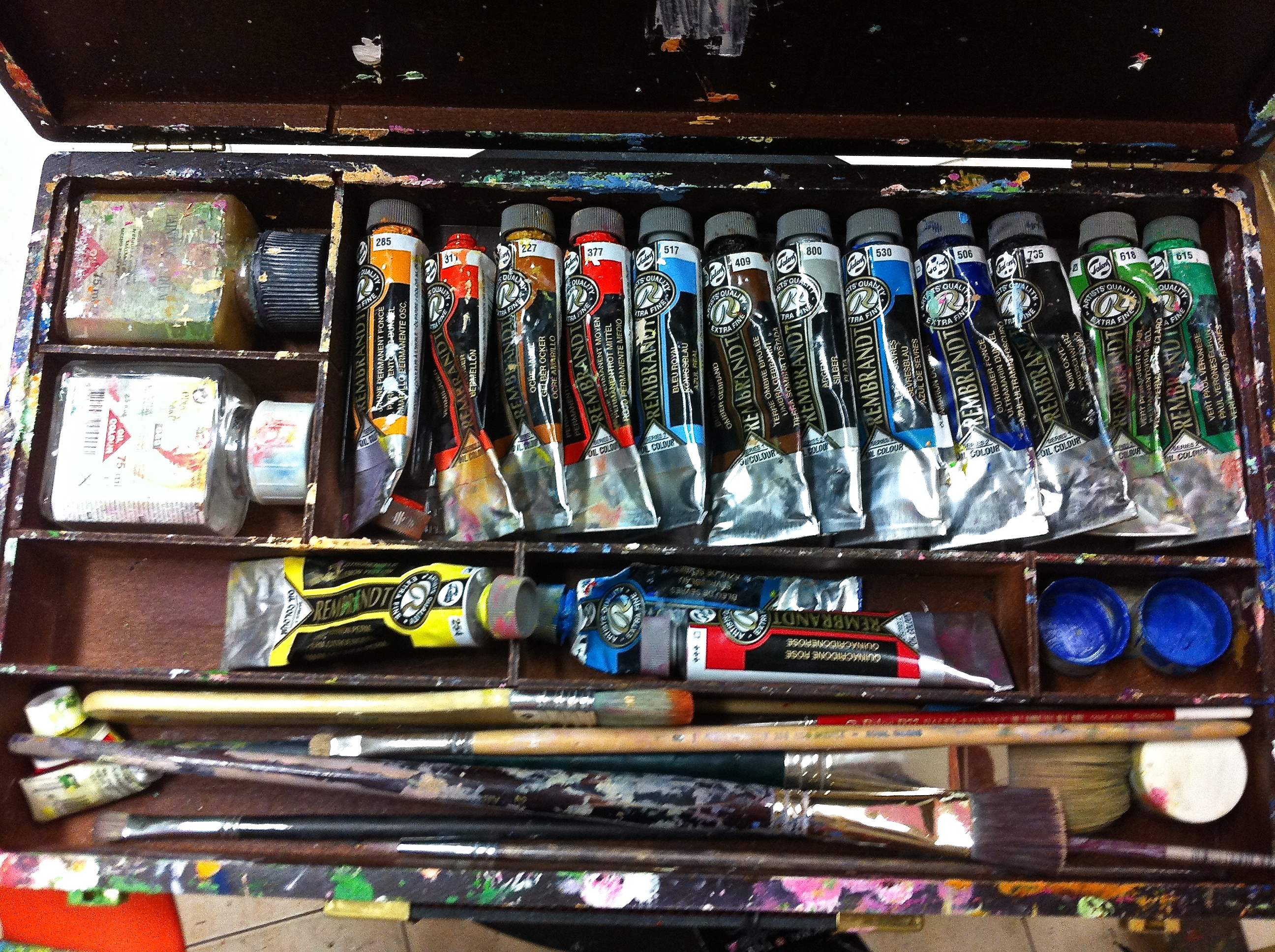 LLego al estudio, siempre con prisas como si estuviera enfadada, rápidamente saludo y con la cabeza en el cuadro me pongo la bata y el mandíl. Cojo un vaso con aguarrás, mis pinceles, la paleta y comienzo el ritual……………..ImagenImagen