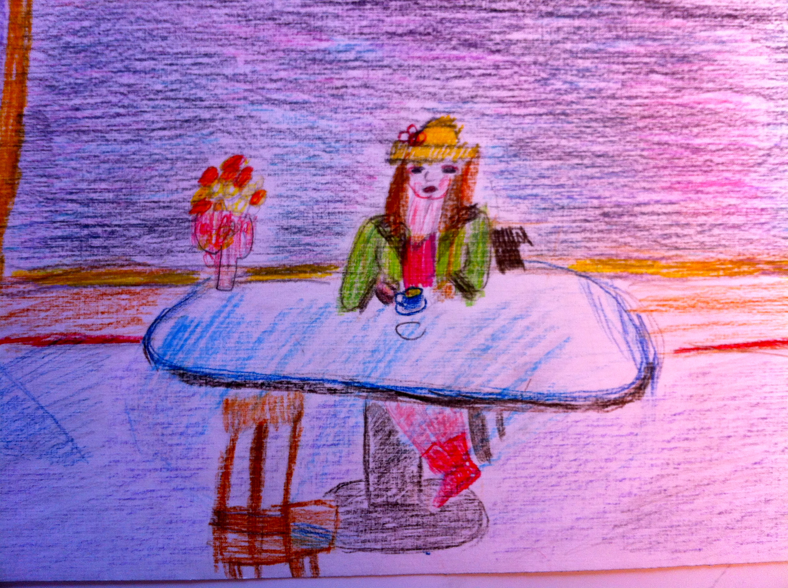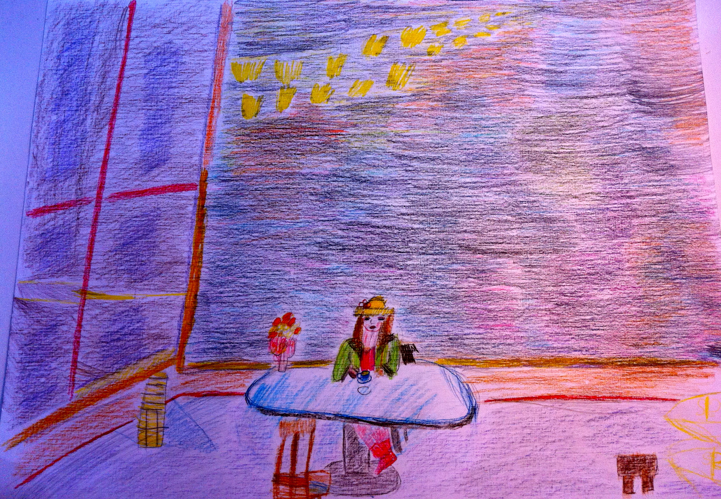Mi hija de 10 años tenia que hacer un cuadro para el colegio, me dijo «mami, quiero hacer un Hopper», tuvimos la suerte de ver la exposición de el en el Thyssen, fabulosa por cierto, y ni corta ni perezosa se lanzó a dibujar su particular copia.