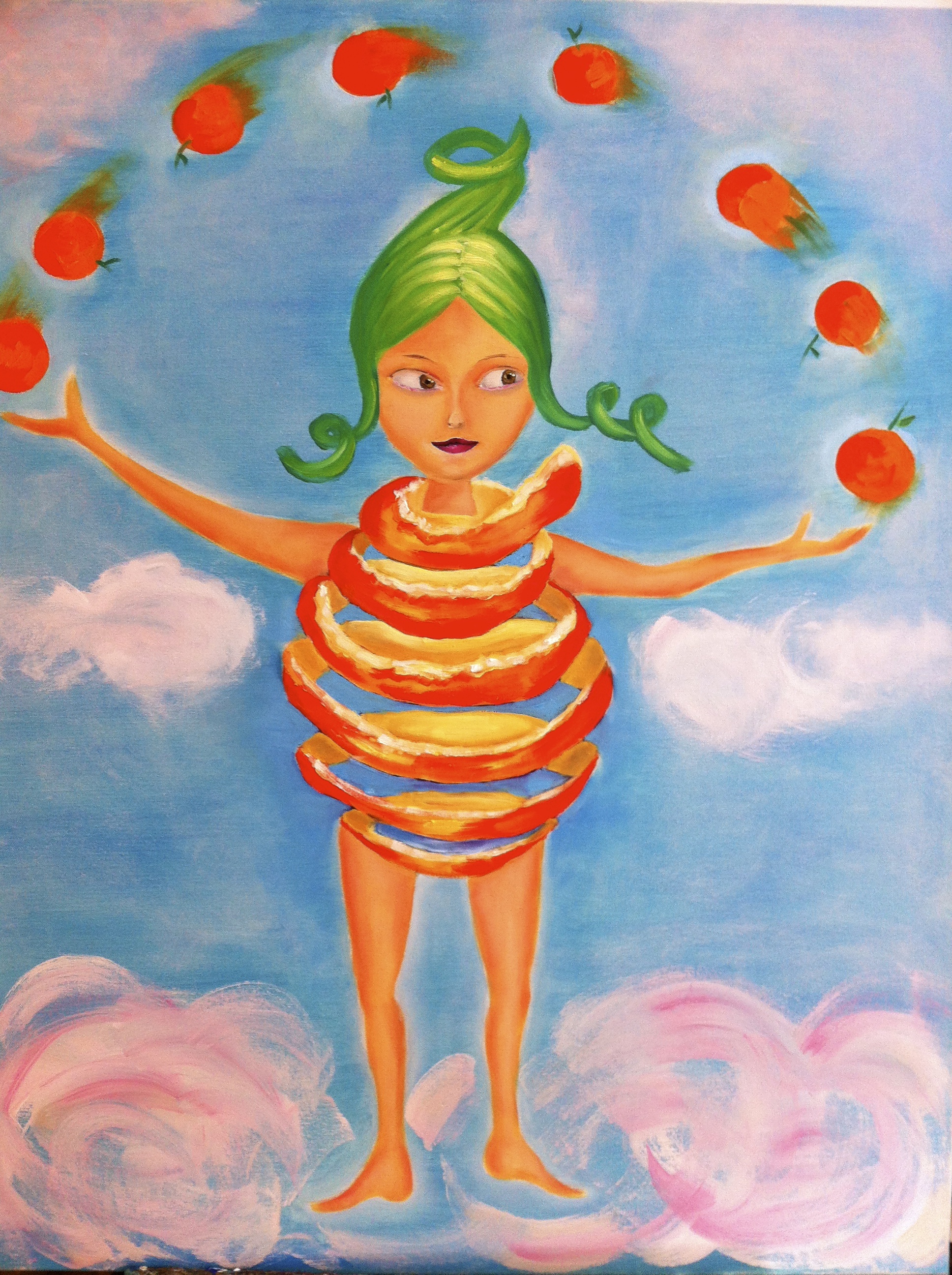 Mi cáscara de naranja juega malabares con otras naranjas que están enteras, siempre en perfecta armonía, la naturaleza con el ser humano. Es mi obsesión. Todo está relacionado. Nada es por casualidad, el mundo, la vida está en continua conexión.ImagenImagenImagenImagenImagenImagen