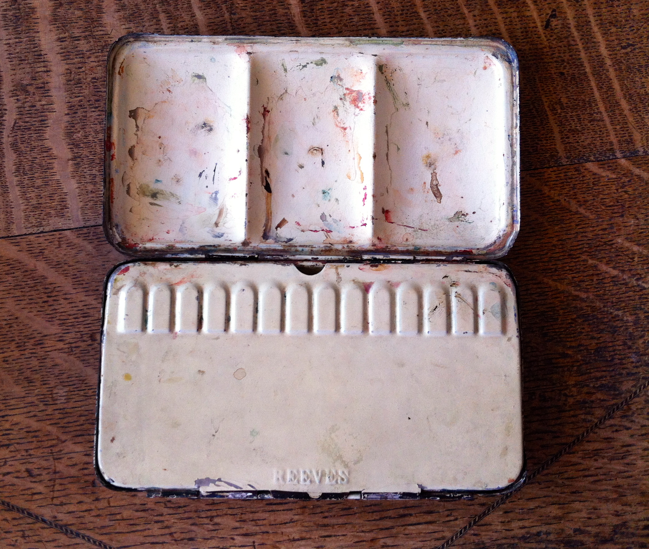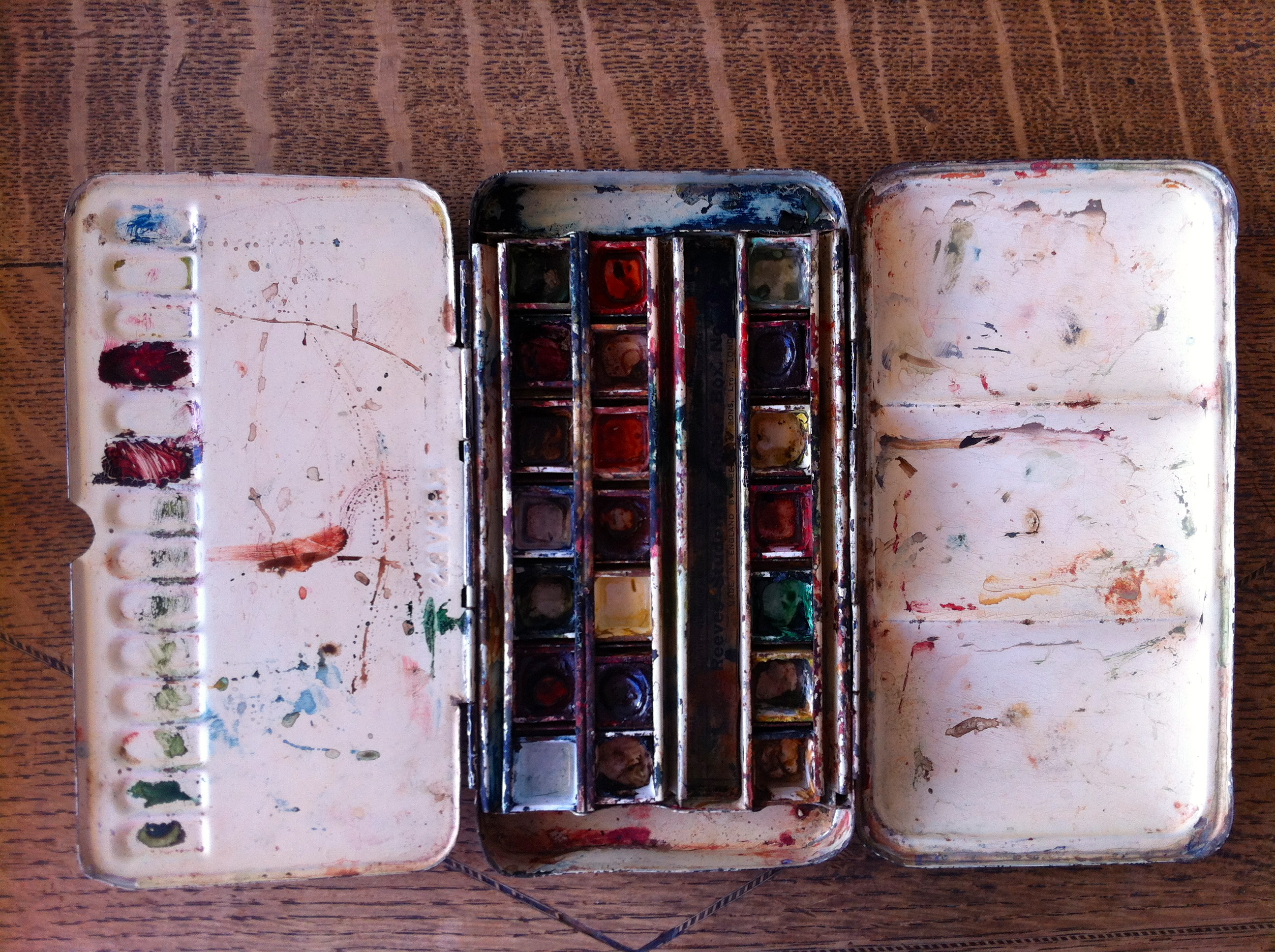 aunque no te conocí parece que hubieras estado siempre a mi lado, he vivido con tus oleos y acuarelas toda mi vida las he visto cambiar de ciudad, de casa, de lugar, nunca me he cansado de mirar ese patio del Viso lleno de flores plasmado en una tabla de madera y ahora ha llegado a mis manos tu mayor herencia, tu caja de acuarelas.