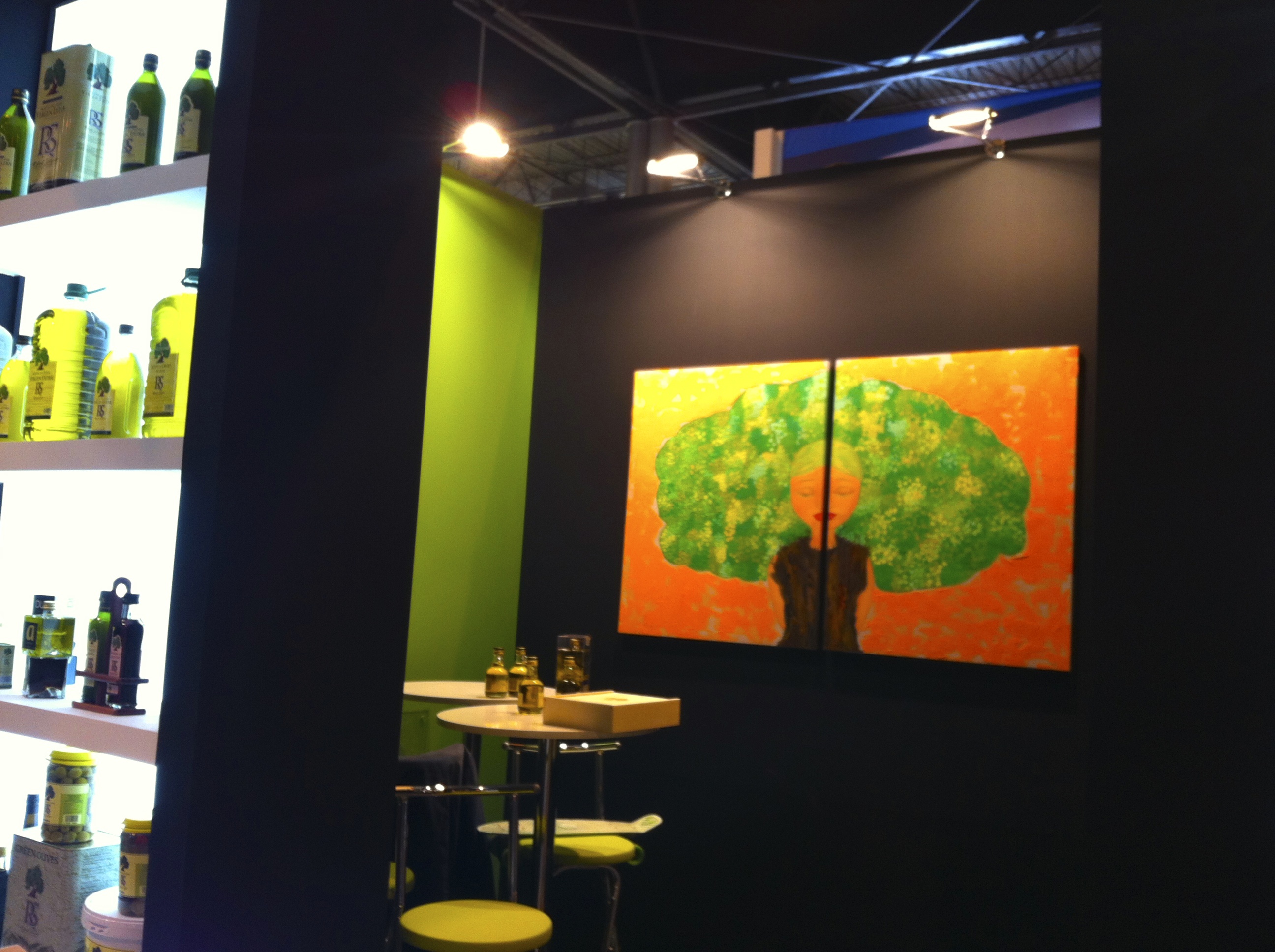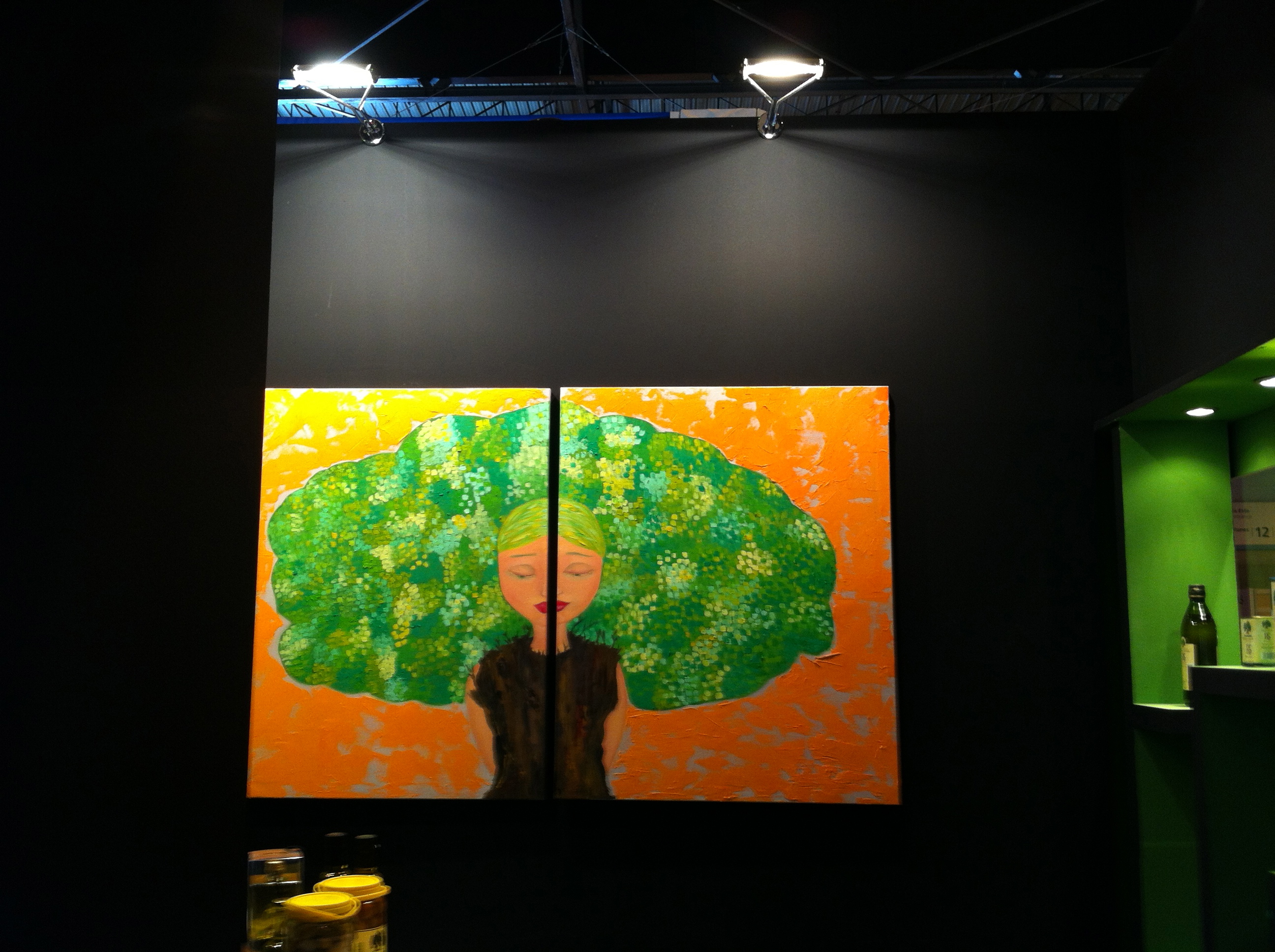 1. Han tenido mucho gusto al exponer tu » Verano » en esta feria creo esta genial con ese fondo depared y esa iluminación. En hora buena.