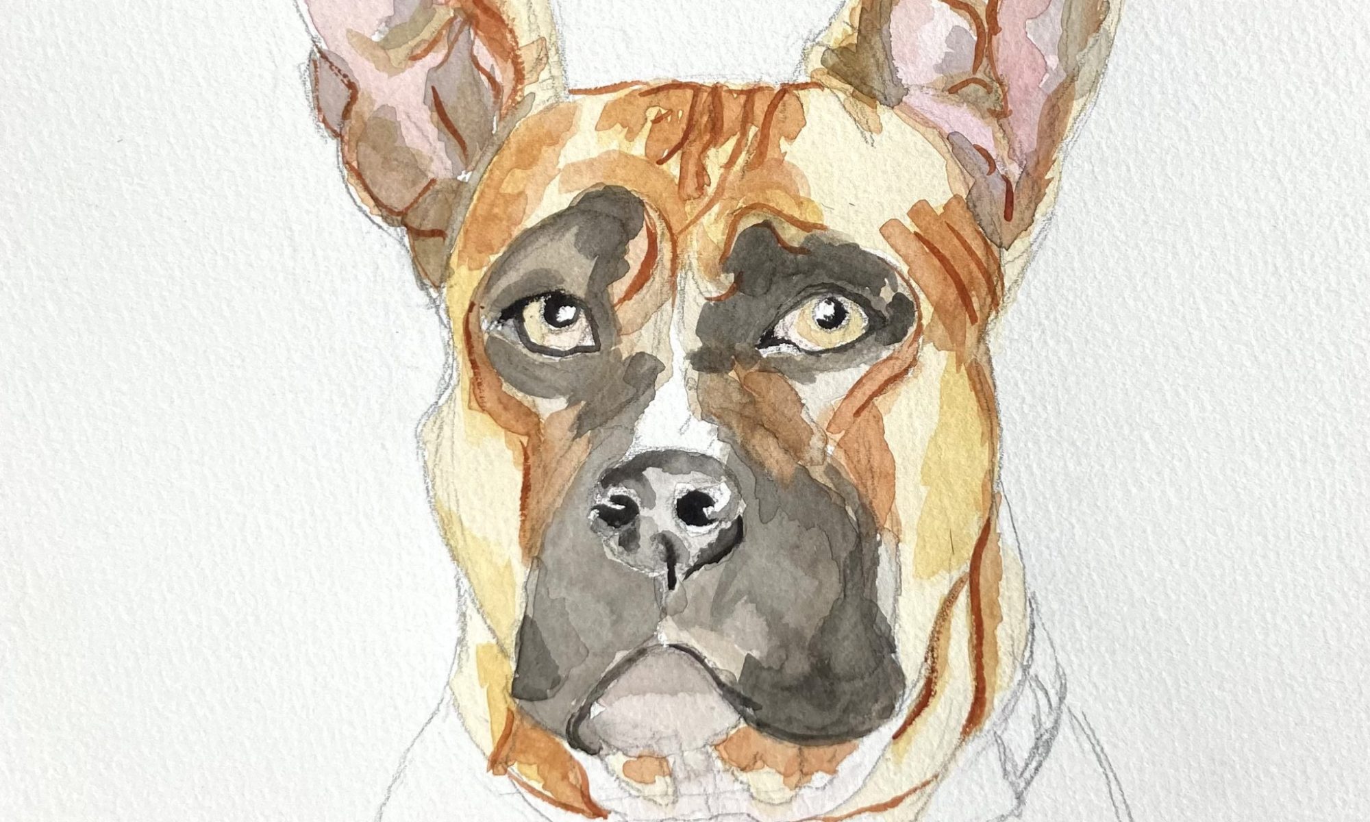Esas orejas son así, no os voy a engañar, quizás algo más exageradas en la acuarela, pero en mi interior “es que son muy grandes”, de cachorro se me ocurrió la genialidad de ponerle un esparadrapo con un céntimo de euro en cada oreja con el fin de que las orejas se arruguen y, estéticamente pueda llegar a ser más guapa si cabe, la realidad es la que se puede plasmar en la acuarela, oreja grande y siempre “al loro” es un radar en perro y eso la hace más maravillosa.