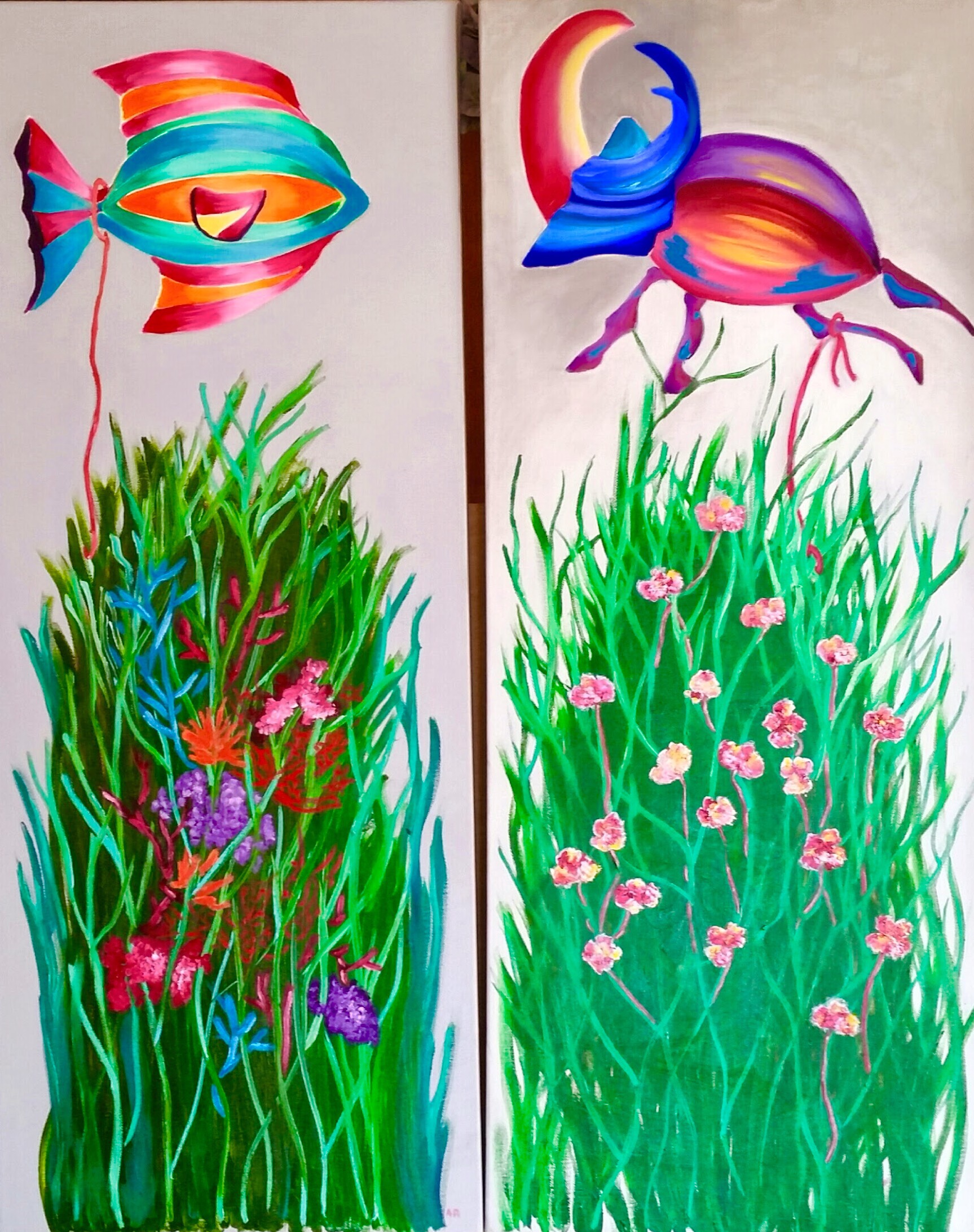 Habitat. Díptico. Técnica mixta sobre lienzo 40cmx100cm cada uno – María Ayucar.