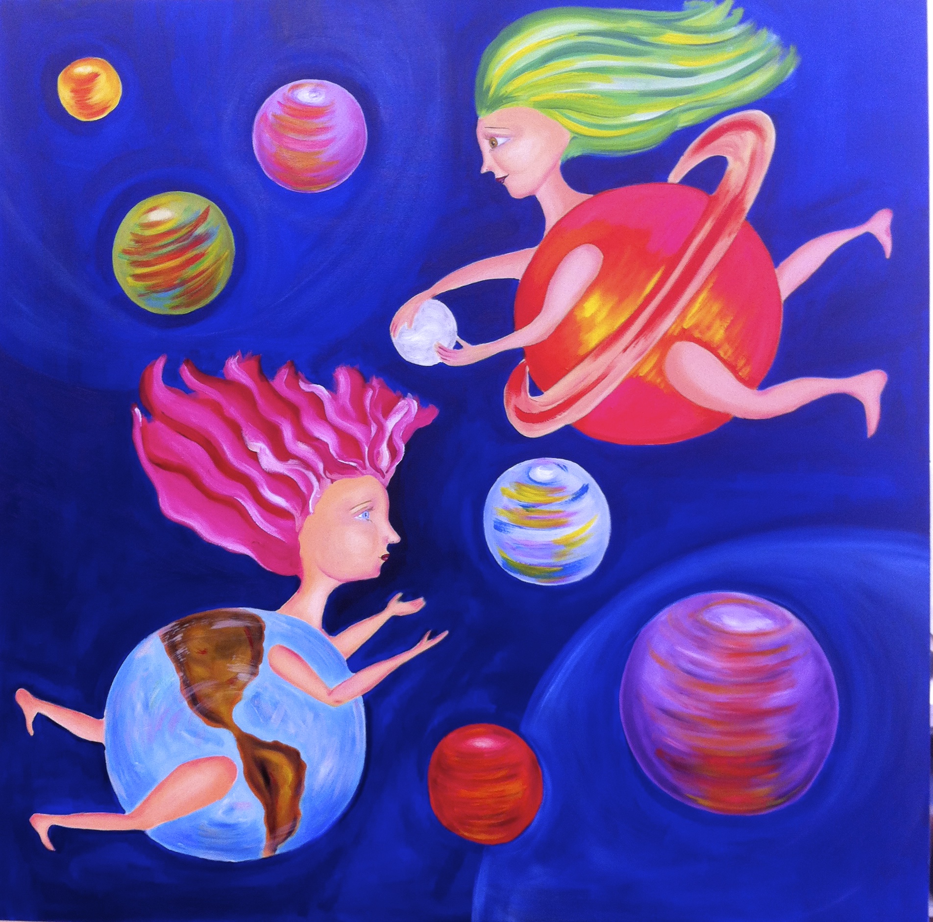 Publicado el marzo 11, 2013marzo 18, 2013«Los Planetas» oleo sobre lienzo 100cm x 100cm Los planetas son juguetones se divierten con la luna, todos bailan al son del universo.